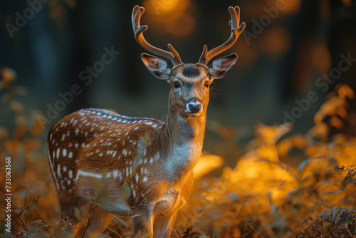 © Natali08, Fototapeta premium A beautiful young noble deer in the forest.