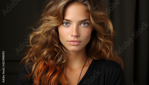 © Grgroup, Fototapeta premium A beautiful young woman with long blond hair looking confidently generated by AI