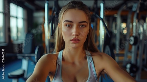 Fototapeta premium A beautiful young woman working out in a gym. Perfect for fitness and health-related designs