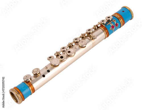 Naklejka premium A beautifully crafted flute featuring intricate designs and vibrant colors,...