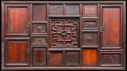 Fototapeta premium A beautifully detailed antique wooden cabinet featuring intricate carvings...
