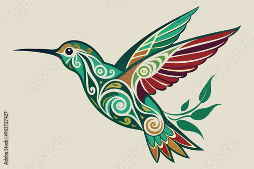 Obraz premium A beautifully detailed illustration of a stylized hummingbird with intricate...
