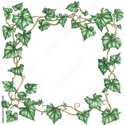 Fototapeta premium A beautifully detailed illustration of ivy leaves framing a blank space. Perfect for nature-themed projects, invitations, or decor. Add a touch of elegance with this greenery.
