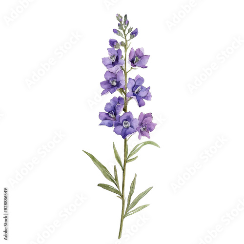 © Naphol, Naklejka premium A beautifully illustrated purple flower with delicate petals and green leaves, ideal for botanical designs and nature themes.