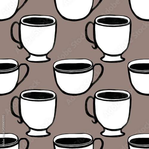 © Lena_Krauze, Obraz premium A beautifully stylized coffee cup pattern set against a neutral background, creating visual harmony