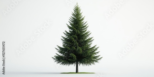 © aicandy, Obraz premium A beautifully symmetrical evergreen tree stands alone on a patch of grass against a pristine white background, showcasing its natural elegance and structural simplicity.