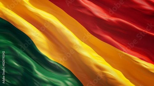 © khonkangrua, Fototapeta premium A beautifully textured Bolivian flag waving, featuring the vibrant red, yellow, and green colors, symbolizing national pride.
