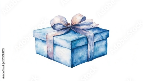 © alpian, Obraz premium A beautifully wrapped blue gift box with a delicate ribbon, set against a clean white background