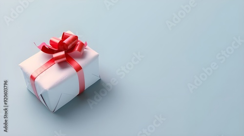 Fototapeta premium A beautifully wrapped gift adorned with a red ribbon.