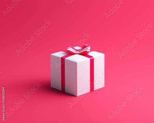 © VANATSANUN, Obraz premium A beautifully wrapped gift box on a vibrant pink background for celebration and joy.