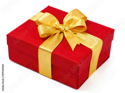 Fototapeta premium A beautifully wrapped gift box with a golden ribbon and a bow, ready for...