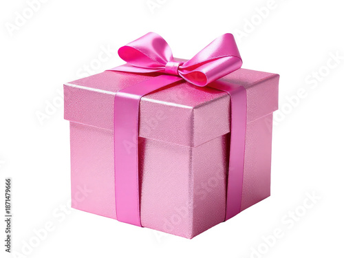 Obraz premium A beautifully wrapped gift box with a pink bow and lid slightly open,...