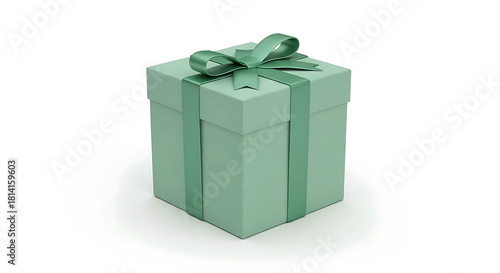 © Designer Lima, Obraz premium A beautifully wrapped gift box with a striped pattern and a satin ribbon bow presented isolated on white background