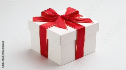 Fototapeta premium A beautifully wrapped white gift box with a red ribbon, perfect for special...