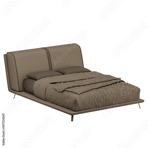 © oybekostanov, Obraz premium A bed with a brown comforter and pillows