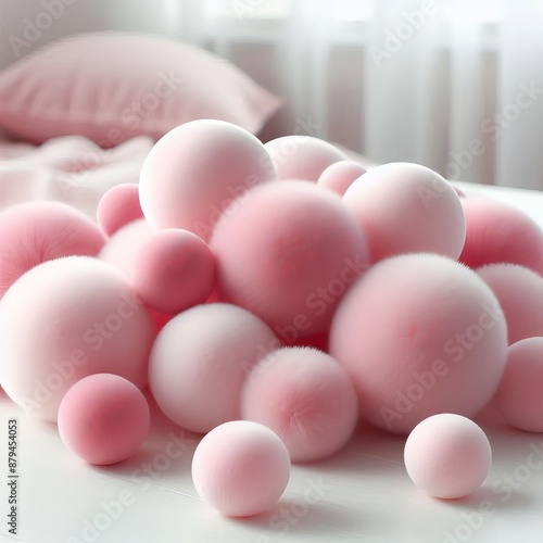 Fototapeta premium a bed with pink and white balls of pink and white candy.