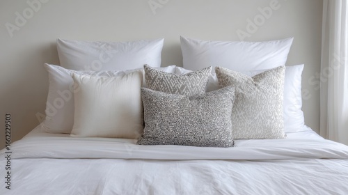 © kachanovski, Fototapeta premium a bed with white pillows and a white blanket