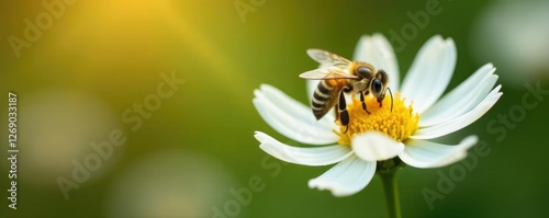 © Prapasarabhron, Obraz premium A bee collecting nectar from a single white flower, garden, wildflower