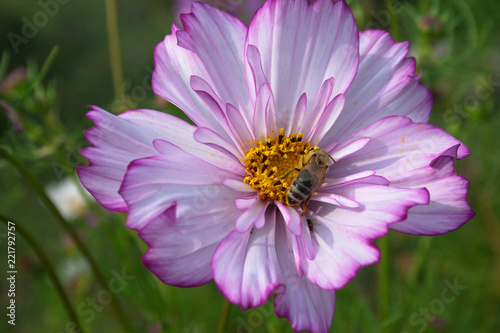 Obraz premium A bee on a flower of a cosme. Сandid.
