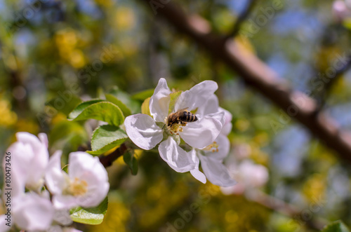 © Farkhad, Obraz premium a bee on a white apple blossom