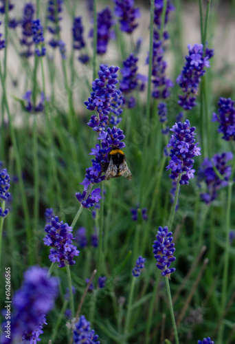 © Alasdair Jones, Obraz premium A bee pollinates a lavender flower in summer.
