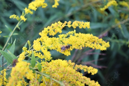 © Ruslan, Obraz premium a bee sits on a yellow flower