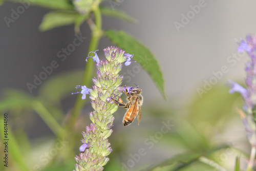 © Zoey, Fototapeta premium A bee visiting a purple flower.