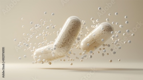 © Ailee Tian, Obraz premium A beige capsules float on a beige background.