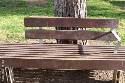 Naklejka premium A bench for relaxing in a city park on the seashore.