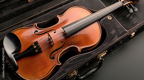 Fototapeta premium A bespoke, handcrafted violin resting in its luxurious case, showcasing its...