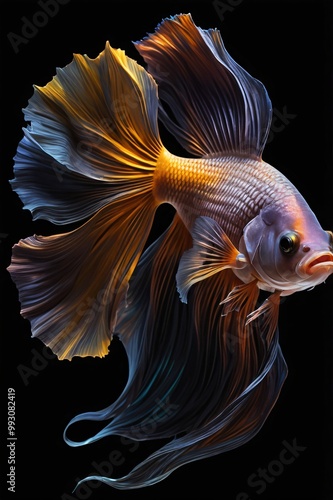 © nattaphol, Obraz premium a Betta fish,a solid black background