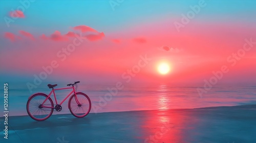 Fototapeta premium A bicycle is parked on the beach at sunset