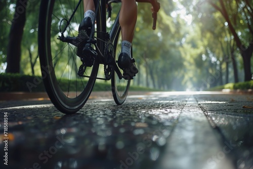 Fototapeta premium A bicyclist on a pedal-powered path promotes kinetic energy, embodying...