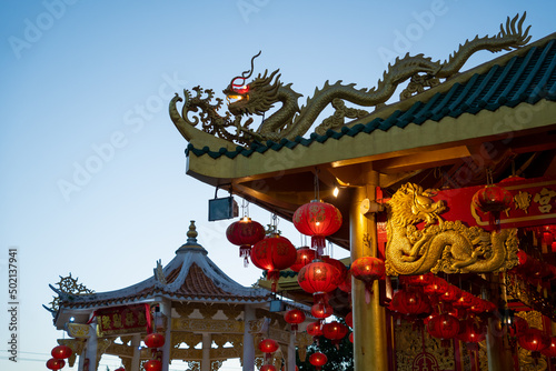 Fototapeta premium A Big beautiful Chinese temple at sunset