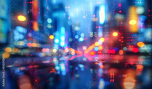 © ConceptStudio, Obraz premium A big city at night in blurred lights