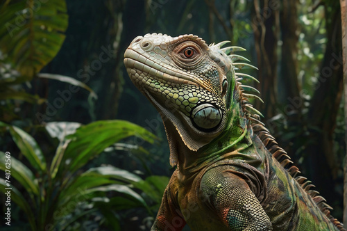 Obraz premium A big iguana in a rainforest.