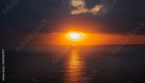 Obraz premium A big sun rises under the dark sky