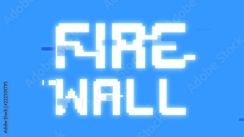 Obraz premium A big text message on a light blue screen with a heavy distortion glitch fx: Firewall.