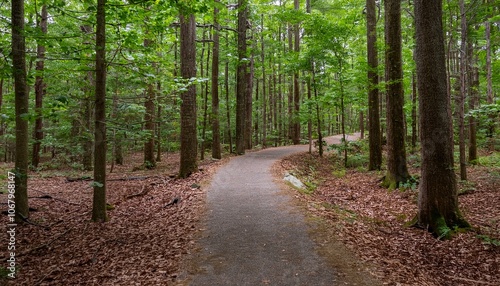 © 순단 강, Fototapeta premium A bike trail leading through lush trees