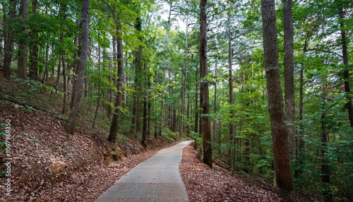 © 순단 강, Fototapeta premium A bike trail leading through lush trees