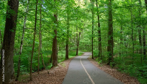 © 순단 강, Fototapeta premium A bike trail leading through lush trees