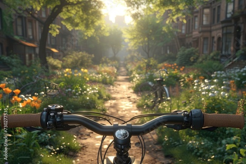 Fototapeta premium a bike view of spring road in the sunlight professional photography