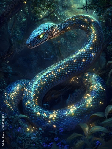 © Nataliia, Fototapeta premium A_bioluminescent_serpent_with_glowing_patterns