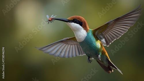 © Sanaz, Fototapeta premium A bird holding its prey in its mouth.