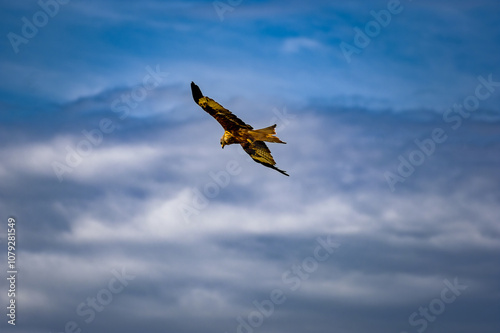 © Adam Sadlak, Obraz premium A bird of prey flying against the sky.