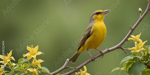 © GERARD, Naklejka premium a bird perched on a flowering branch. Sublime and touching scene, representing the wonders of nature.