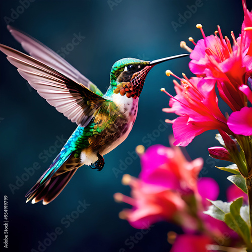 © Creative, Obraz premium A bird perches a flower with its beak ai generated