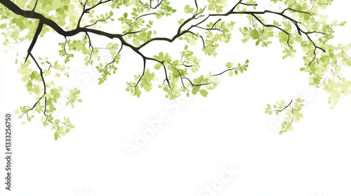 © Diffin, Fototapeta premium A bird perches on a leafy tree branch, creating a serene natural scene.