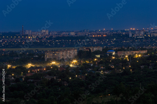 Naklejka premium A bird's-eye view of the city at night. Bright lights of a big city in Eastern Europe