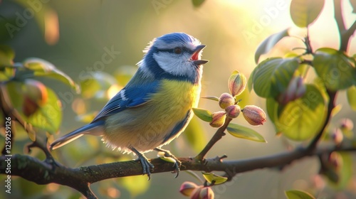 © Zubaedah, Obraz premium a bird singing in a field of flowers